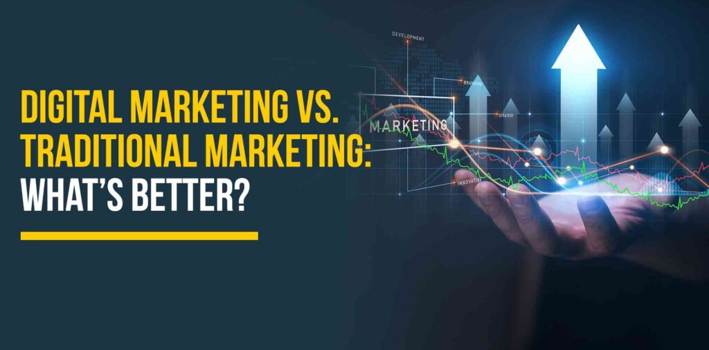 Digital marketing and traditional marketing differ mainly in their approach and reach. Traditional marketing uses offline methods like TV, radio, and print ads to reach large audiences. In contrast, digital marketing employs online platforms such as social media, websites, and email to target specific groups. Digital marketing is more cost-effective, measurable, and interactive. Traditional marketing helps build local awareness and emotional connections. Both methods are valuable depending on a brand’s goals and audience.